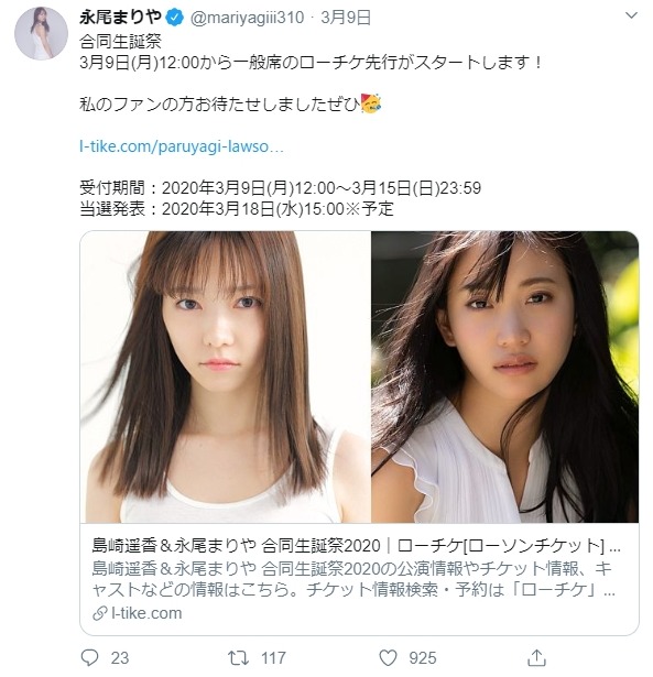 【朗報】島崎遥香&永尾まりや、合同生誕祭2020開催!