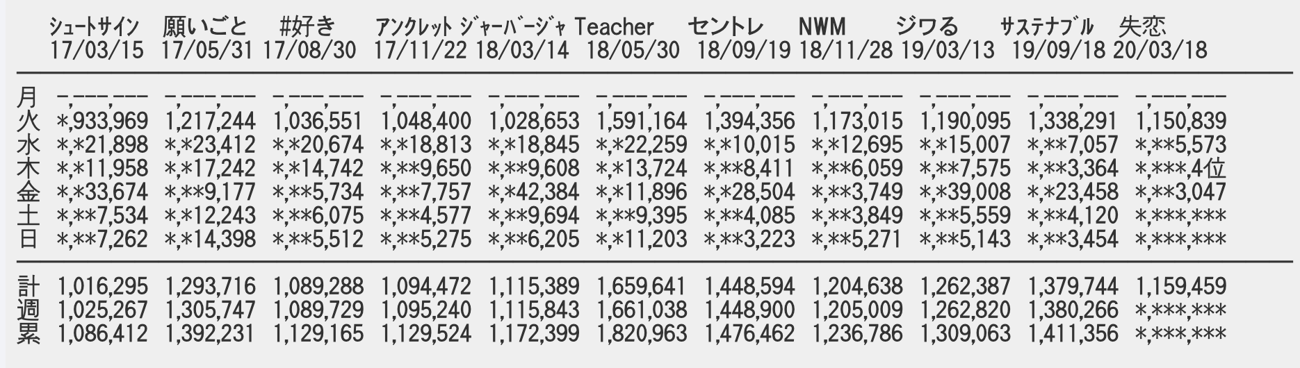 【速報】「失恋、ありがとう」4日目売上3,047枚