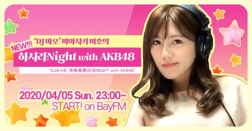 本日4月5日、午後11時からスタートのbayfm「柱NIGHT! with AKB48」の初回にみーおんさんと出演させて頂きます😆