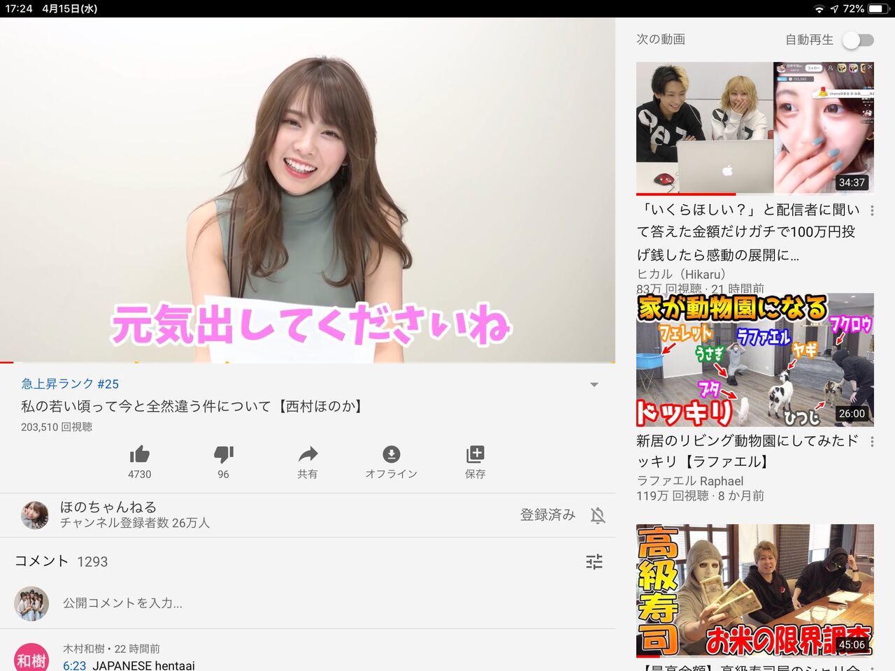 【速報】 西村歩乃果さん、youtube急上昇ランキング入りし全国民に見つかるwwwwww