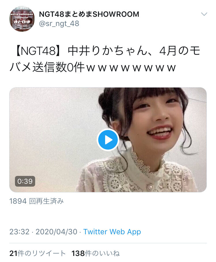 【悲報】中井りかの4月のモバメ送信数がヤバいwwwwwwwwwwww