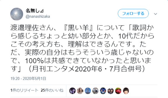 19:20 – 2020年5月1日https://twitter.com/nanashizaka/status/1256166496314593281