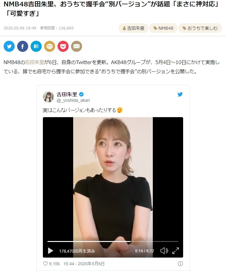 【AKB48G】「#おうちで握手会」いいね数全グループ上位20名がこちら!なお実質トップは別バージョンの吉田朱里www