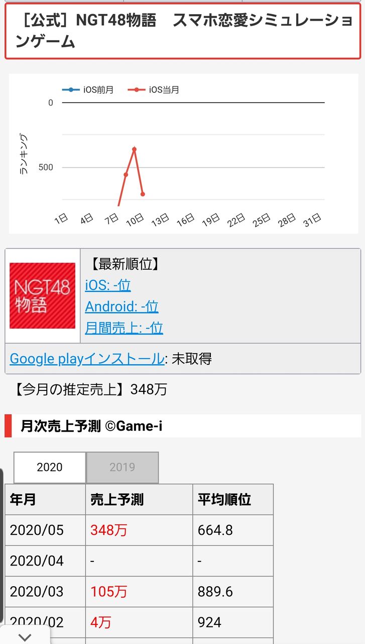 NGTの恋愛シミュレーションゲームの月次売上予測wwwwwwwwww