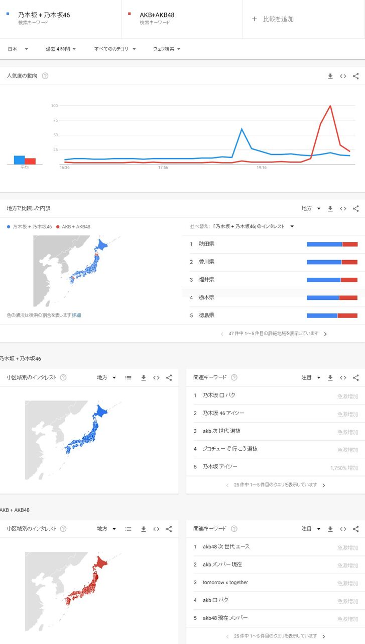 AKBさん、ついうっかり乃木坂にトレンド勝ちしてしまう