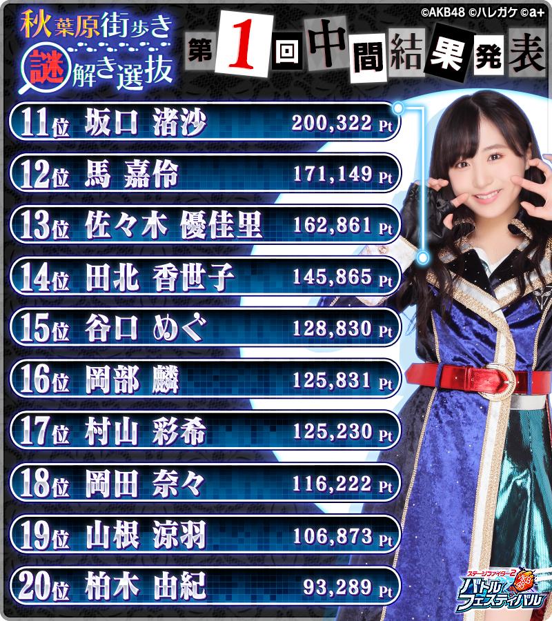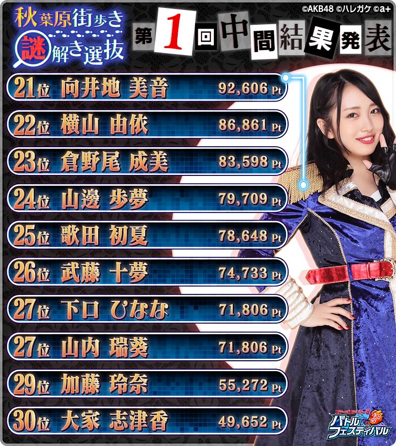 【AKB48】バトフェス「秋葉原街歩き謎解きゲーム選抜バトル」第1回中間結果発表