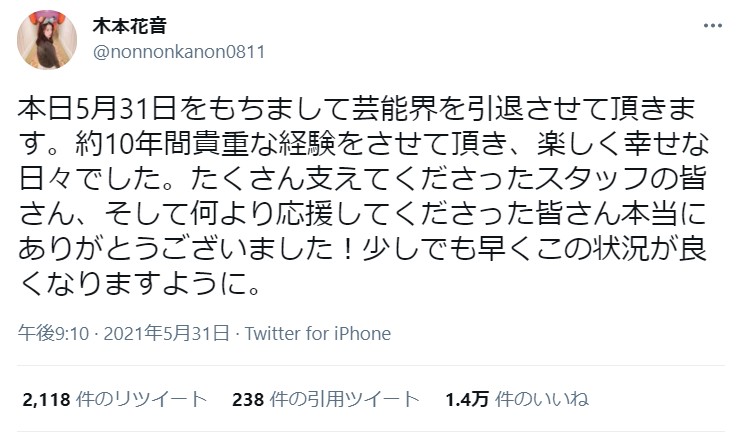 元SKE48 木本花音「本日5月31日をもちまして芸能界を引退させて頂きます。」【元HKT48】