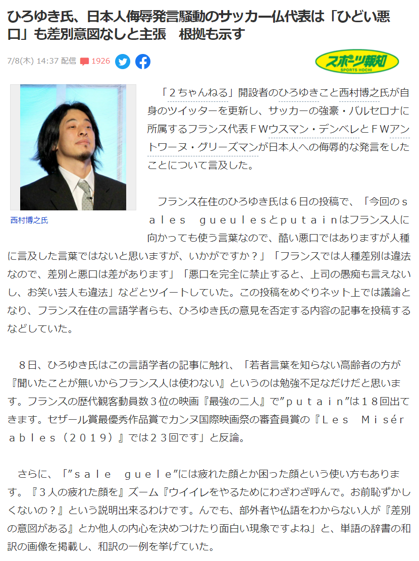 【悲報】サッカー仏代表の差別発言擁護で炎上してる中、ひろゆきを絶賛してしまうAKBメンバーw