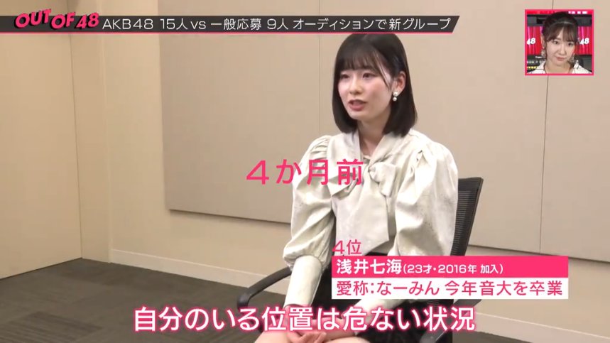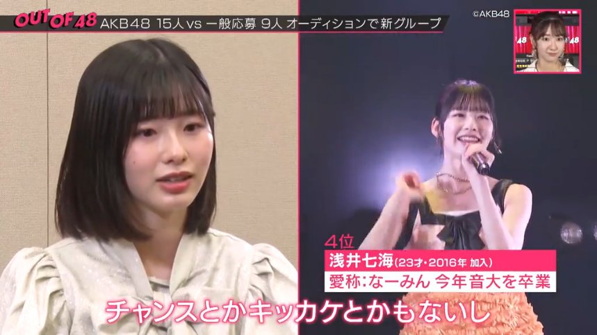 【AKB48】浅井七海「自分のいる位置は危ない状況。上に上がれるチャンスとかキッカケとかもない」