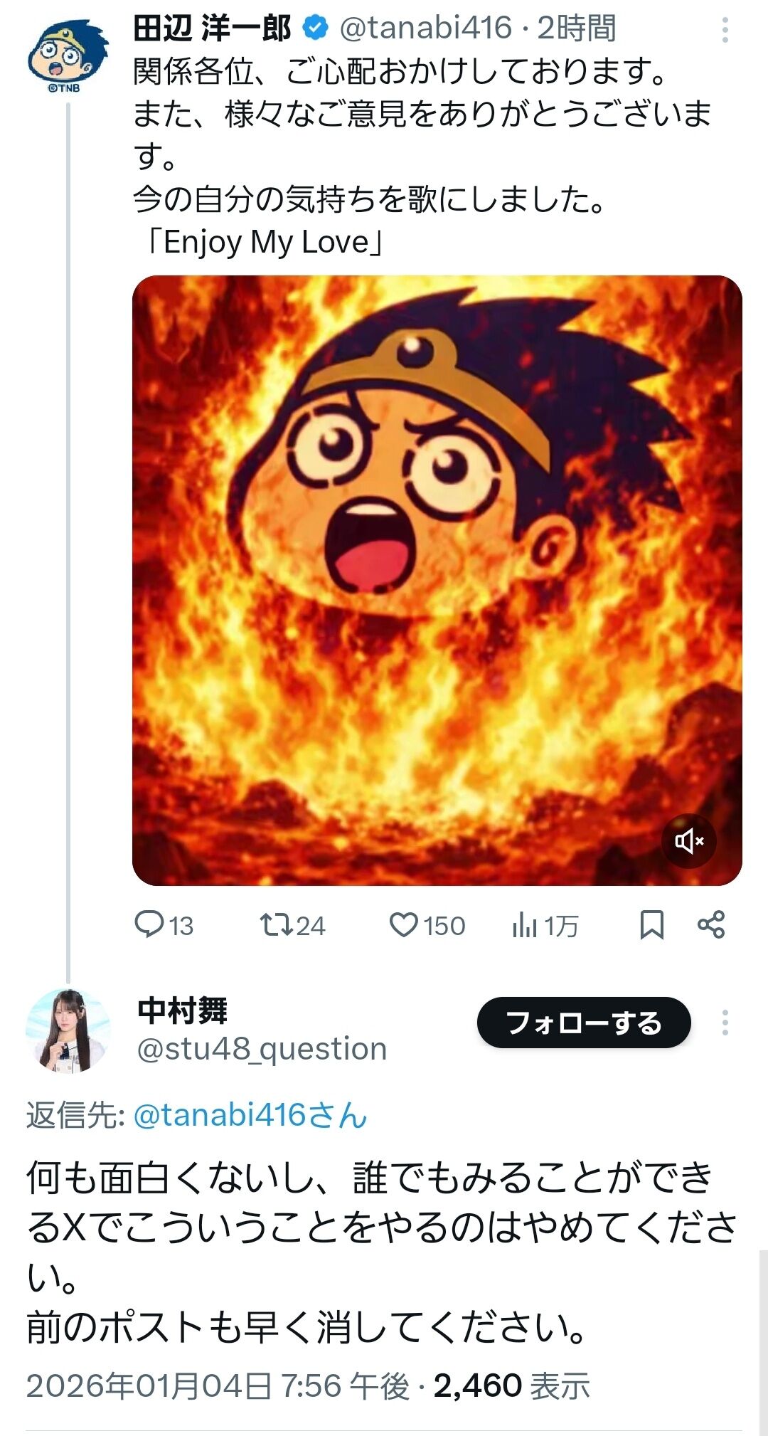 【速報】STU48中村舞、漫画家・田辺洋一郎にマジギレ!!【工藤理子】