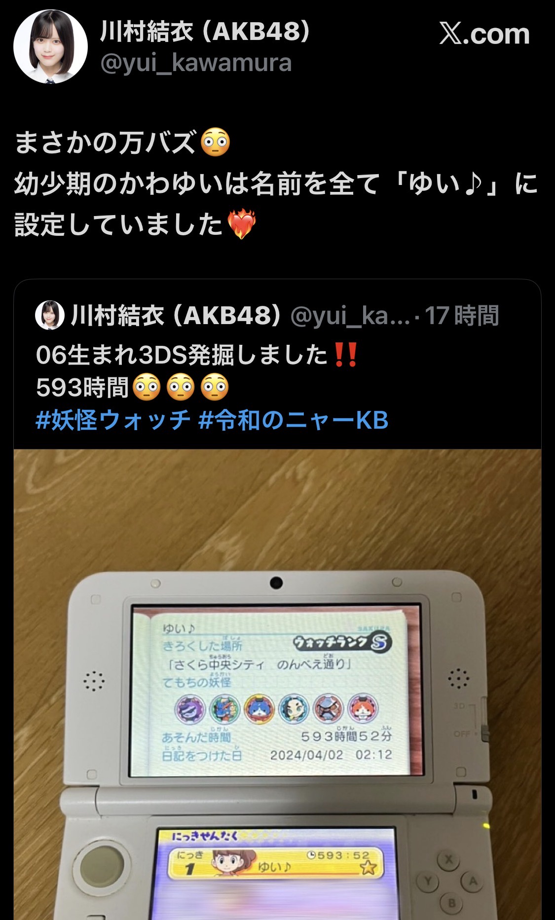 【ニャーKB】AKB48川村結衣チャン 妖怪ウォッチのプレイ時間 がエグい!!【かわゆい】