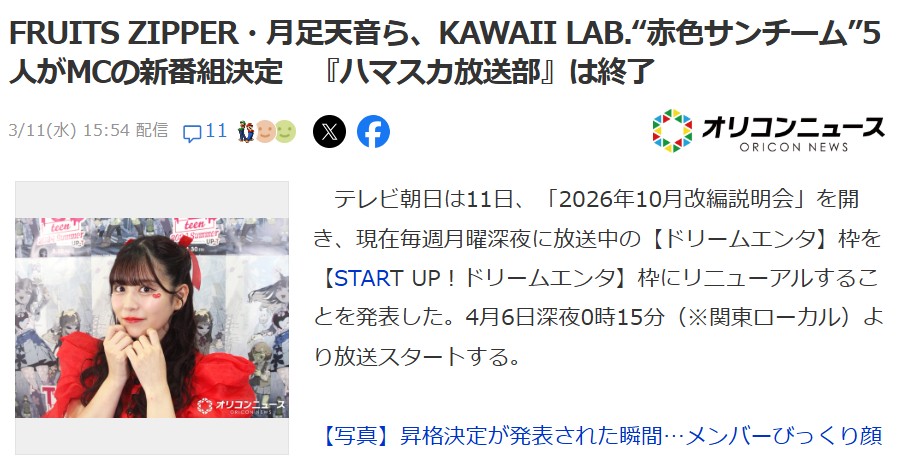 【驚き】齋藤飛鳥さんのテレ朝番組が終了→FRUITS ZIPPER月足天音さんがMCの番組開始!!【元乃木坂46・元HKT48】